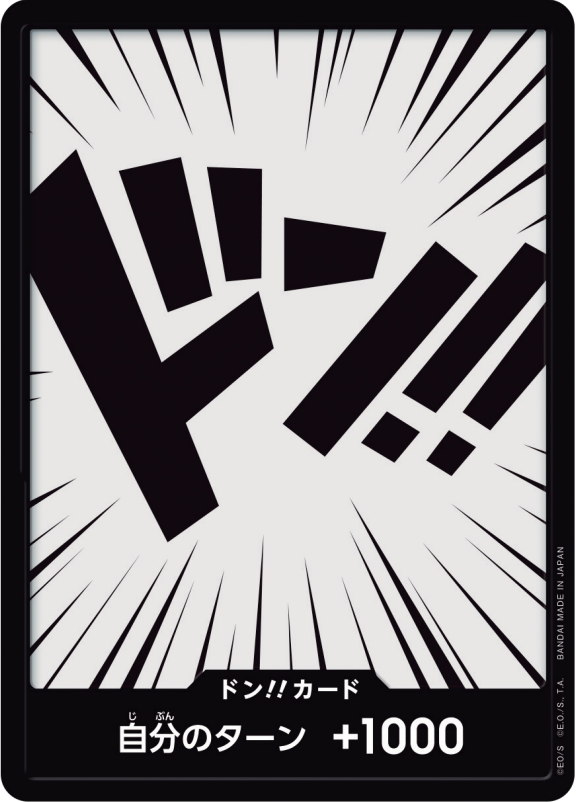 カード自体に付与することも出来ます。キャラクターカードやリーダーカードに付与することで、そのターン中、パワー+1000に出来ます。