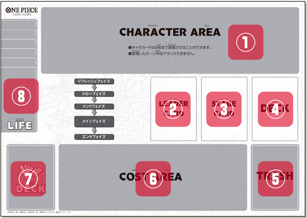 コストエリアとは⑥のことで、ドン‼から引いたコストカード(ドン‼カード)を貯めておくスペースです。