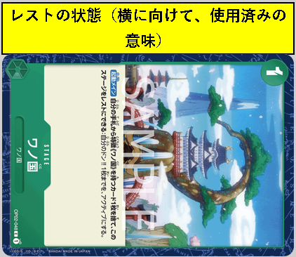ステージカードをレストにすることで発動出来るカードです。「このステージをレストにできる」はレストにしないと発動できないよ、という意味になります。