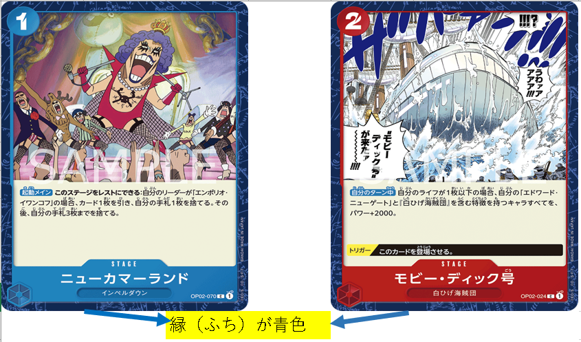 ステージカードの区別は縁(ふち)の色が青色になっています。