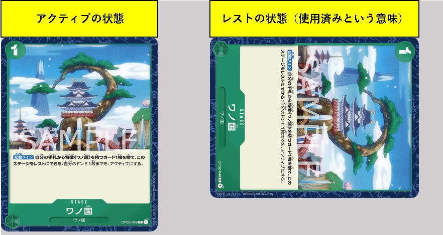 さっきのステージカードと同じで、レスト(使用)したドン‼カードも次の自分のリフレッシュフェイズには全てアクティブに戻ります。